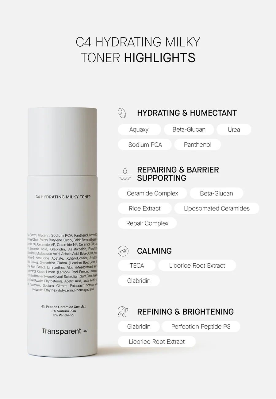 I pasuruar me një kompleks peptidesh dhe ceramidesh që punojnë në sinergji për të riparuar dhe përforcuar barrierën natyrale të lëkurës, PCA natriumi për të ndihmuar në ruajtjen e lagështisë, dhe Pantenol, i njohur për vetitë e tij qetësuese dhe riparuese. Formula e tij hibride 2-në-1 kombinon lehtësinë e një toniku me efikasitetin dhe përqendrimin e një serumi, duke ofruar hidratim të thellë dhe veprim riparues që nga përdorimi i parë.