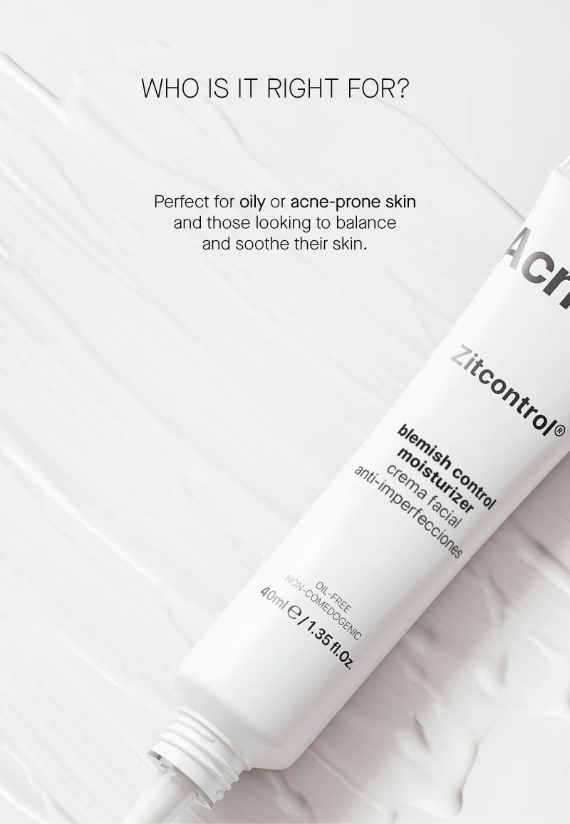 Një trajtim i aftë për të mbajtur nën kontroll aknet, për t’i zvogëluar ato dhe për të parandaluar shfaqjen e tyre? Provoje! Quhet Zitcontrol® dhe është i formuluar me përbërës të tillë si acidi salicilik, zinku PCA, niacinamide dhe quora noni PRCF, të cilat kanë veti për të kontrolluar, reduktuar dhe parandaluar aknet.